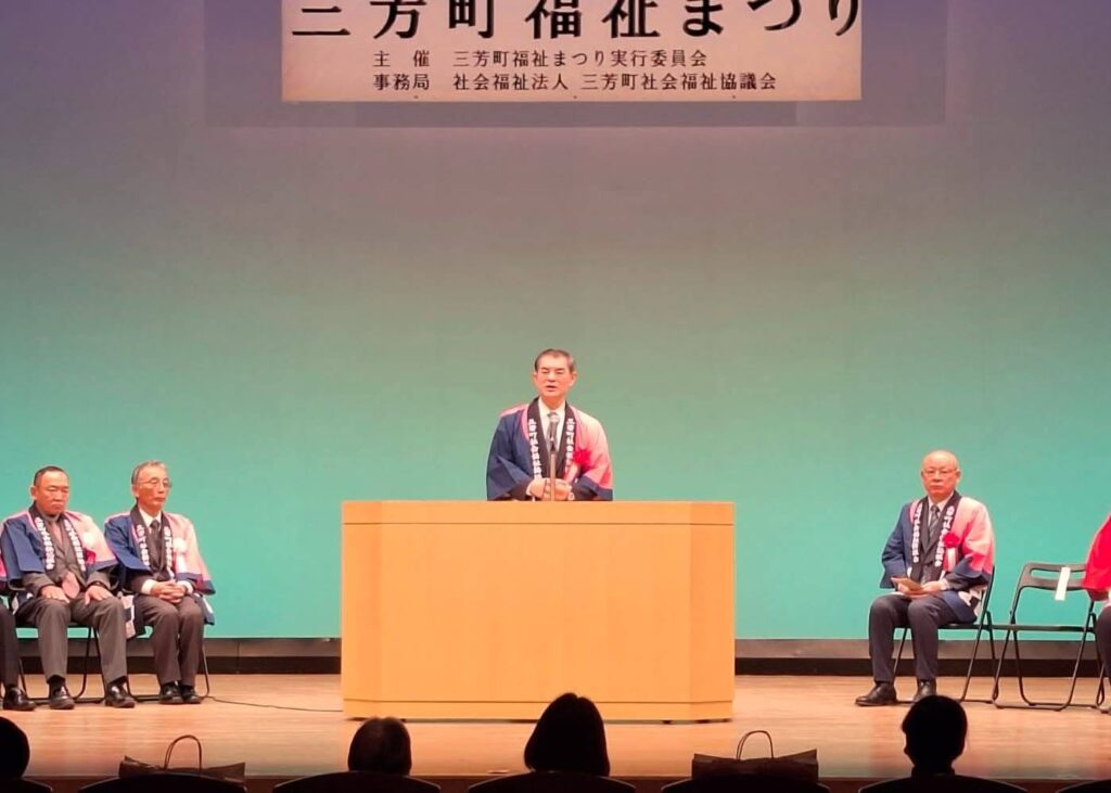 第34回三芳町福祉まつりの開会式に来賓として伺いました。障害者アートや福祉功労で表彰された方々をお祝い申し上げるとともに、これからの地域ネットワークや関係者の方々の処遇改善のため、皆様としっかり連携していきますと決意を述べさせていただきました。