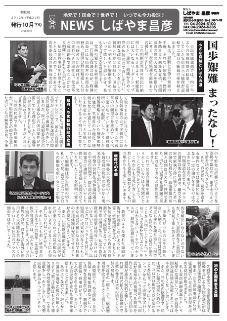 NEWSしばやま昌彦10.2月号(表面) | | |