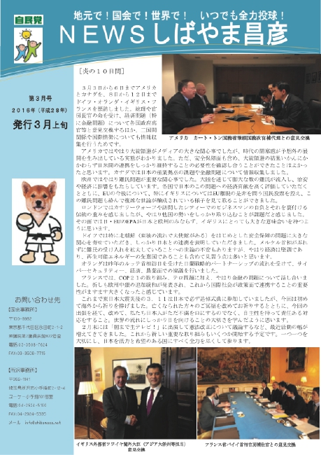 NEWSしばやま昌彦16.3月号(片面) | | |