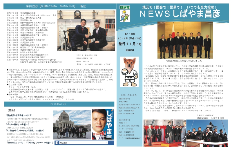 NEWSしばやま昌彦15.11月号(表面) | | |