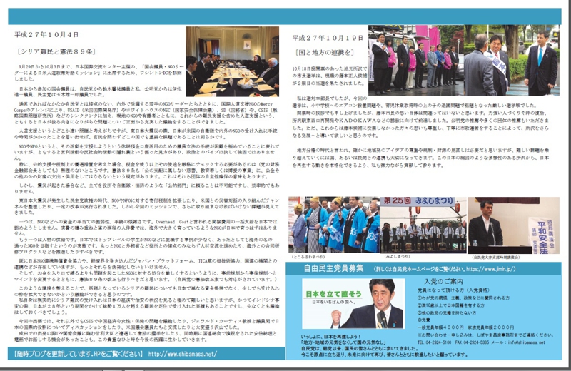 NEWSしばやま昌彦15.11月号(裏面) | |