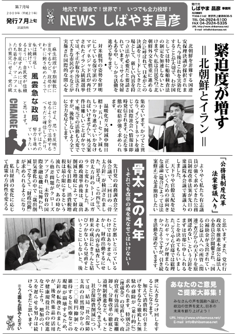 NEWSしばやま昌彦09.7月号(表面) | | |