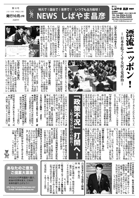 NEWSしばやま昌彦10.10月号(表面) | | |